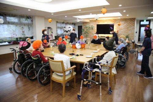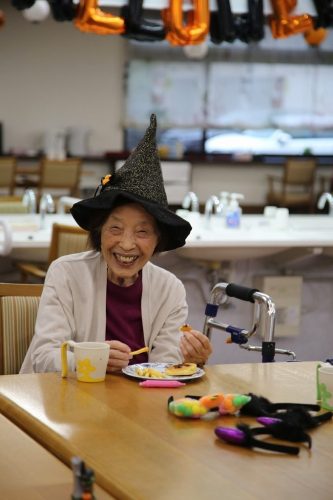 今年はおやつの時間にハロウィン気分を盛り上げる飾りつけしたフロアーで